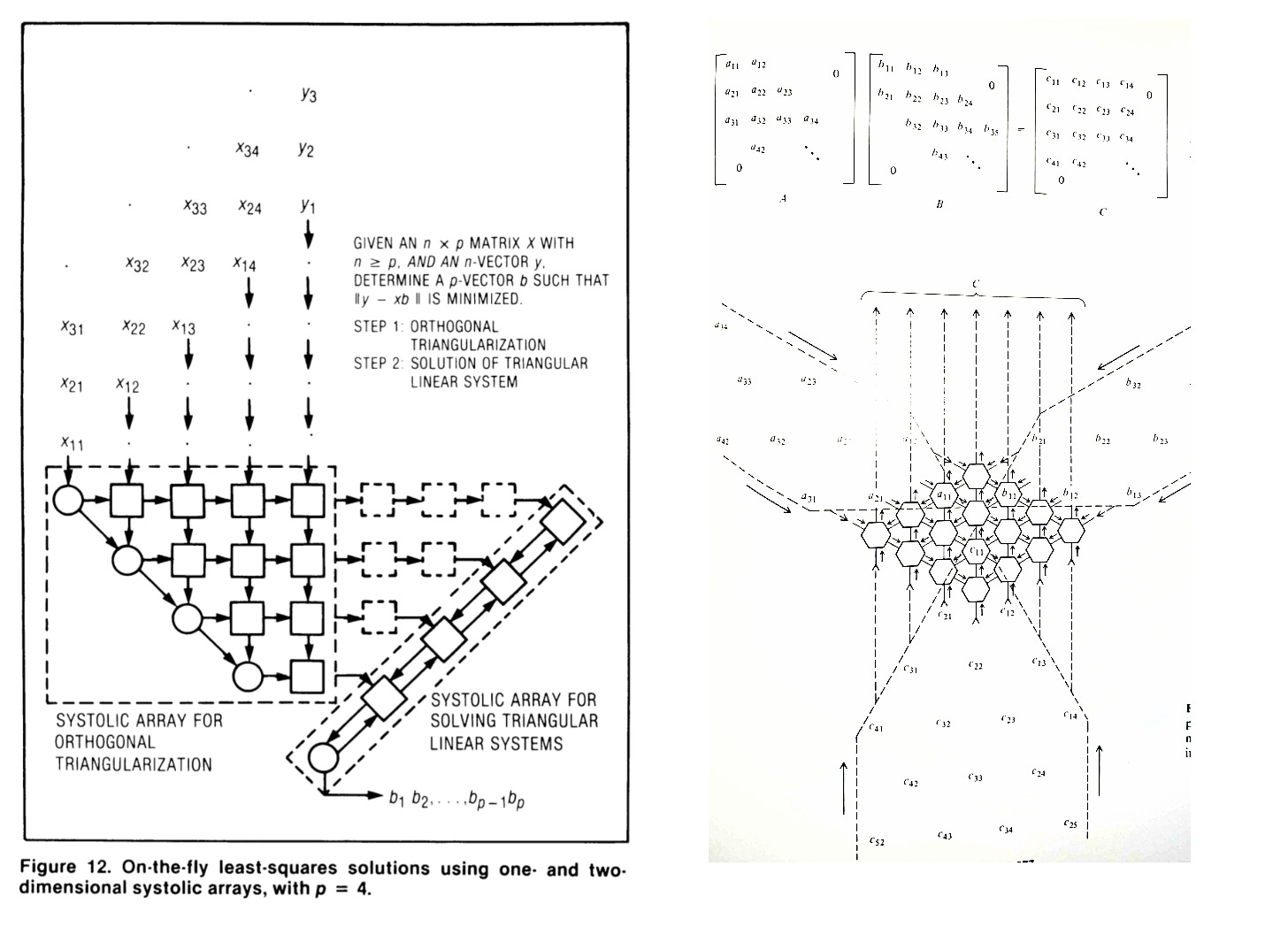 First published in 1978 by H.T.Kung, here below is the systolic array architecture. From a philosophical sense, one of the most elegant designs in computer architecture … it’s poetic. In these systems, data pulses through a grid of processing elements (PEs), each of which perform a small computation and passes results to the next.
