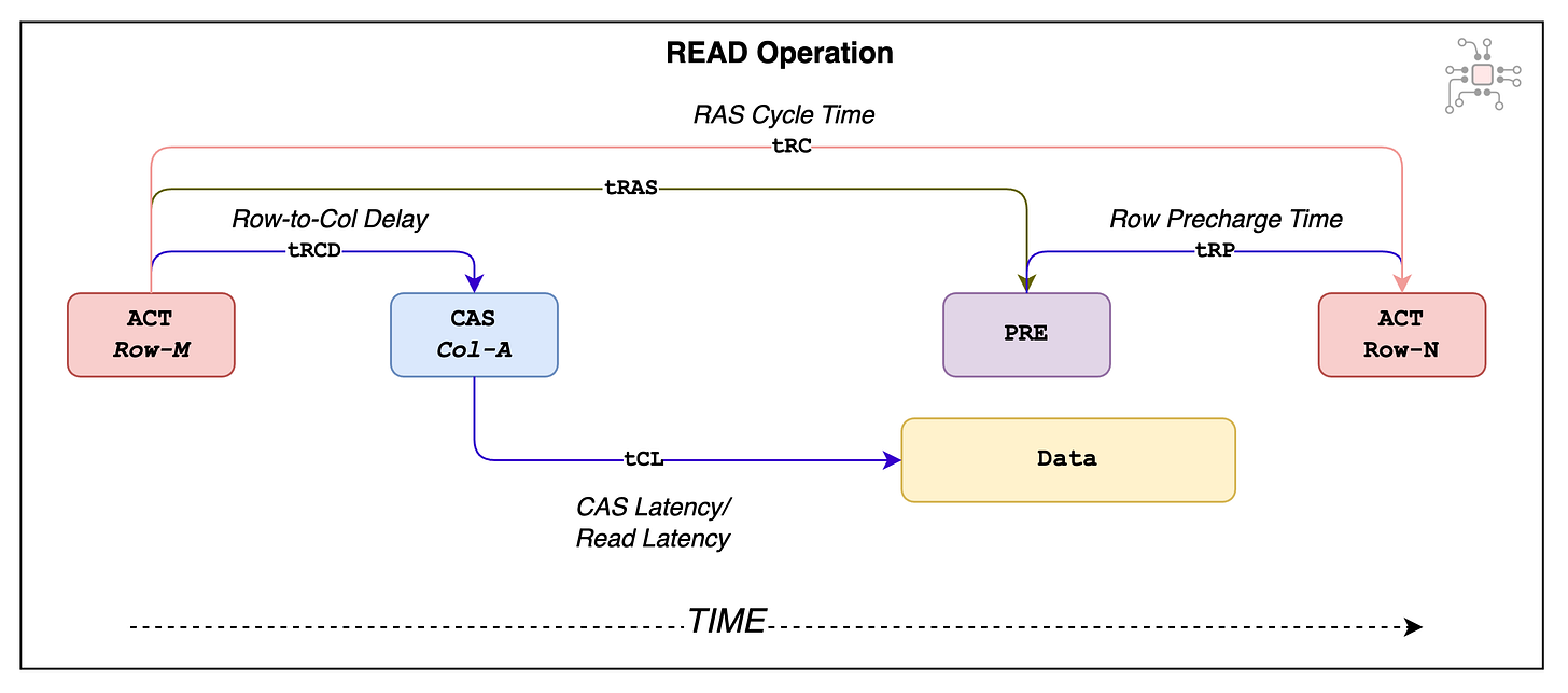 PhysicalStructure- We tackled this last time, breaking down how DRAM is organized at the cell, bank, and die levels.Timing Parameters - Reading and Writing to DRAM is like a carefully choreographed dance. Timing parameters dictate the rules that have to be followed while accessing DRAMs and have a big effect on the performance.