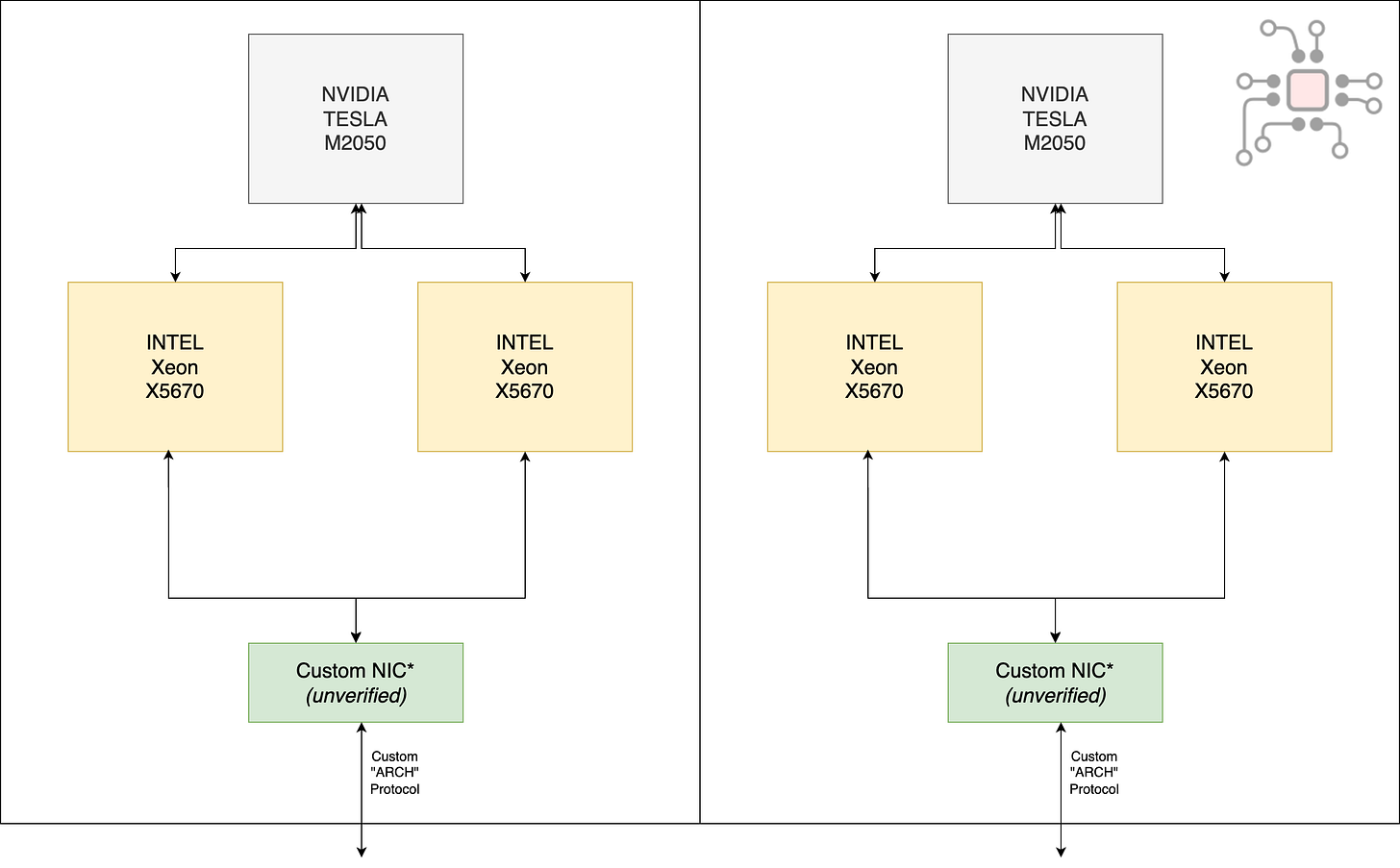 The interconnect was proprietary, which delivered roughly 2× InfiniBand bandwidth at the time.