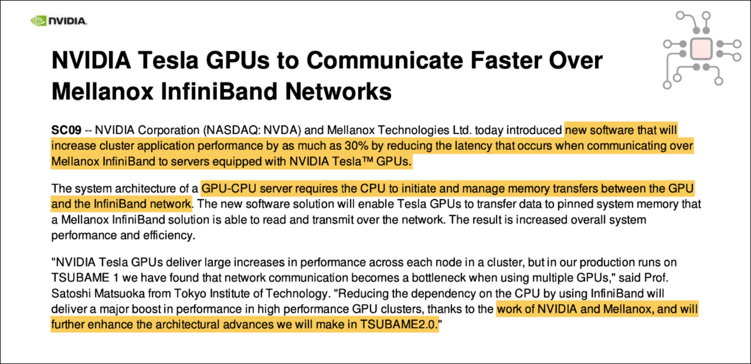 At SC09 (Supercomputing 2009), NVIDIA and Mellanox formally announced their partnership.