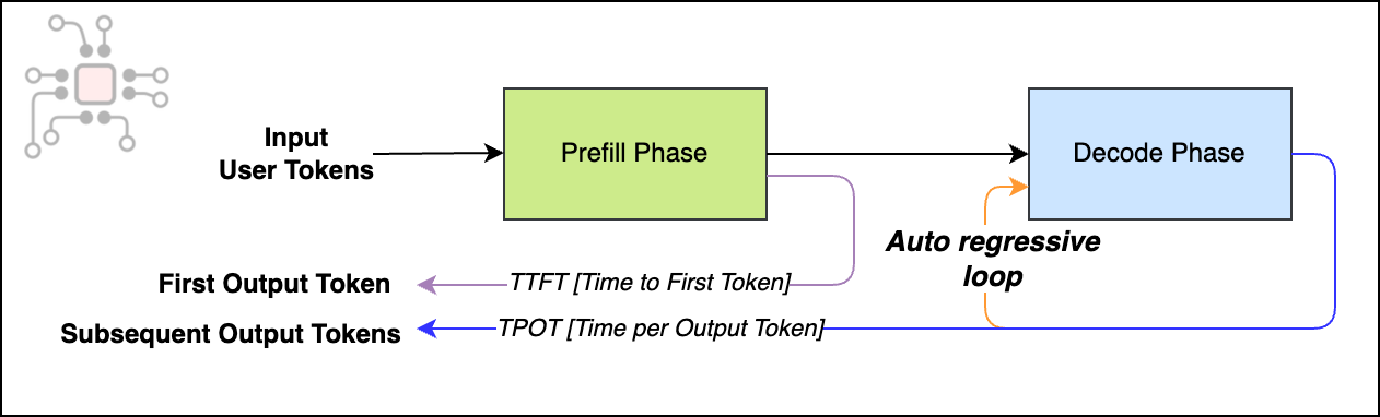LLM inference has two phases, prefill and decode. Prefill processes the prompt and builds the initial KV cache. Decode is what happens next: the model generates one token, feeds that token back in, then generates the next token, and so on. That loop (one token at a time) is inherently serial, which is why decode often becomes the limiting step in production inference. It shows up directly as user-visible latency, because it determines how long it takes to produce a complete response. The technical term for this is autoregressive decoding.